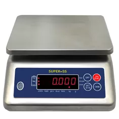 IP65 rated portion scale with stainless steel top housing 23mm selectable backlit LCD display. Rechargeable battery or mains adaptor (supplied). Waterproof, moisture-proof and good vibration resistance · Fast and accurate weighing · Double red LED display · Adjustable LED brightness · 4 adjustable feet High